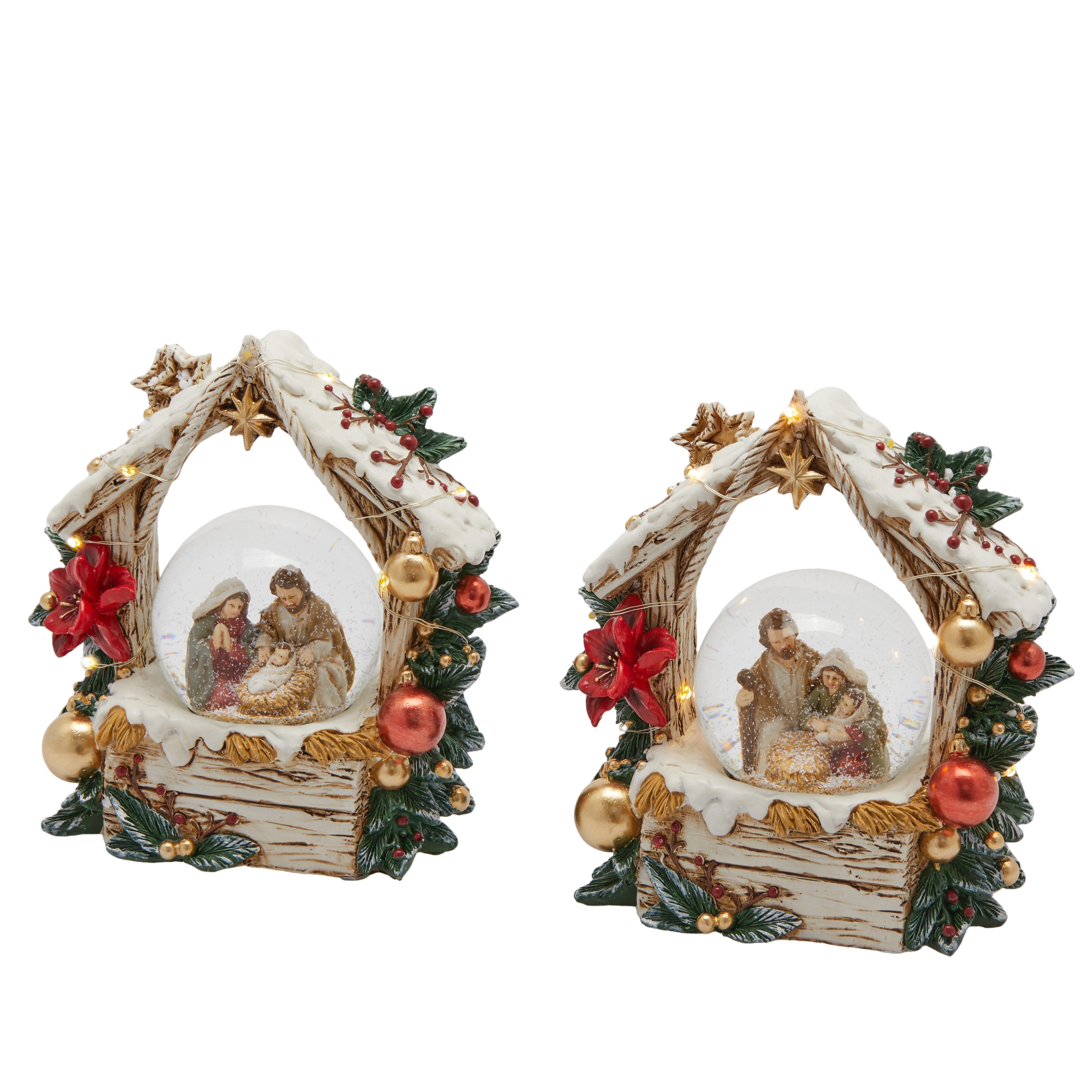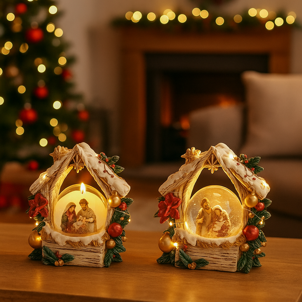 Agitala per far volteggiare i glitter “a neve” e, grazie all’illuminazione integrata, goditi un piccolo presepe luminoso perfetto per mensole, camini, centrotavola o come idea regalo ricca di significato.
