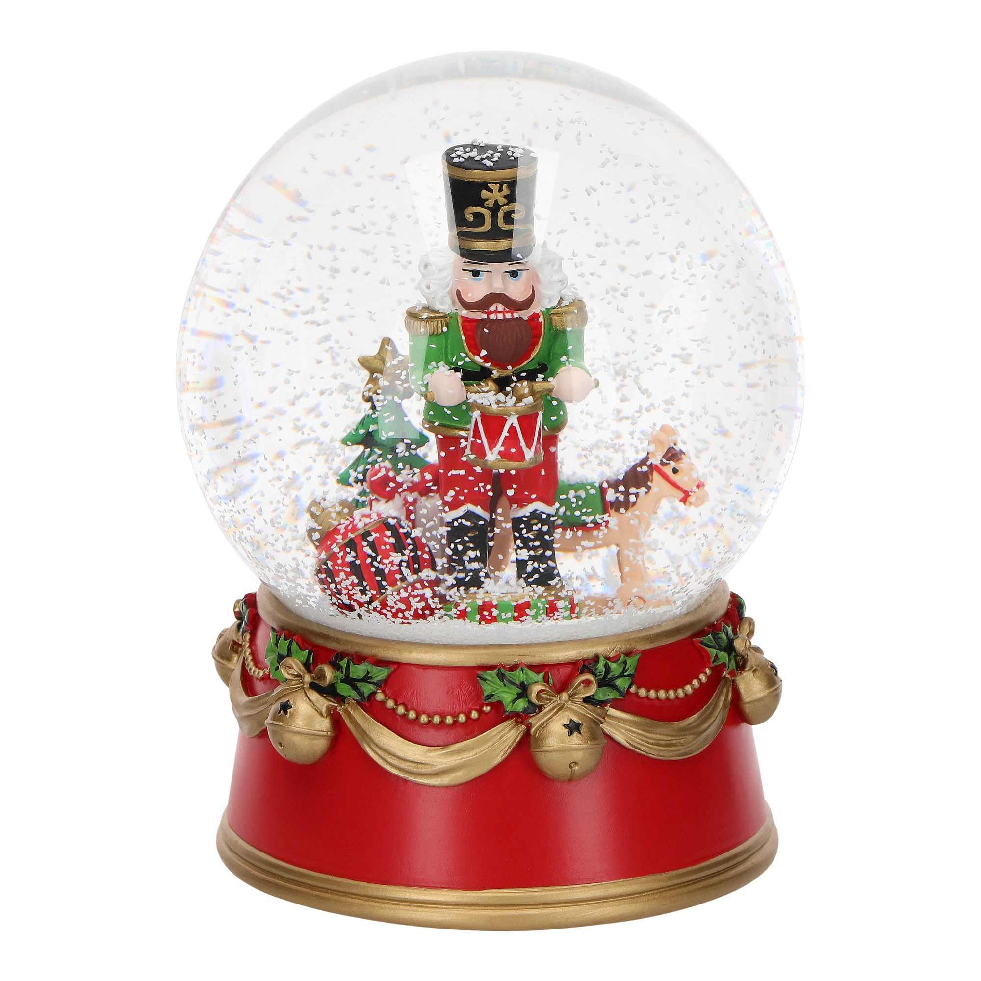 Sfera d'acqua con natività e carillon, decorazione natalizia alta 14,5 cm