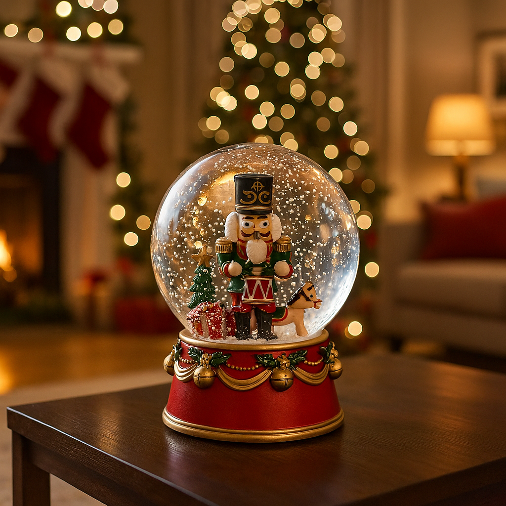 Un piccolo presepe galleggia in un globo di vetro cristallino: basta capovolgere la sfera perché una pioggia di glitter dorati avvolga la Sacra Famiglia, mentre il carillon diffonde una melodia natalizia che scalda l’atmosfera. Una decorazione che trasforma qualsiasi angolo di casa in un angolo di pace e meraviglia.