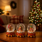 Una snow globe poetica e irresistibile: all’interno, un orso “goloso” circondato da dolcetti prende vita tra fiocchi scintillanti quando agiti la sfera, mentre il carillon meccanico diffonde una dolce melodia natalizia. Un pezzo compatto ma scenografico, perfetto per mensole, camini, tavolini o come regalo ricco di atmosfera.