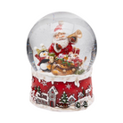 Sfera di vetro con acqua, Babbo natale con sacco e trombetta, carillon da 20 cm