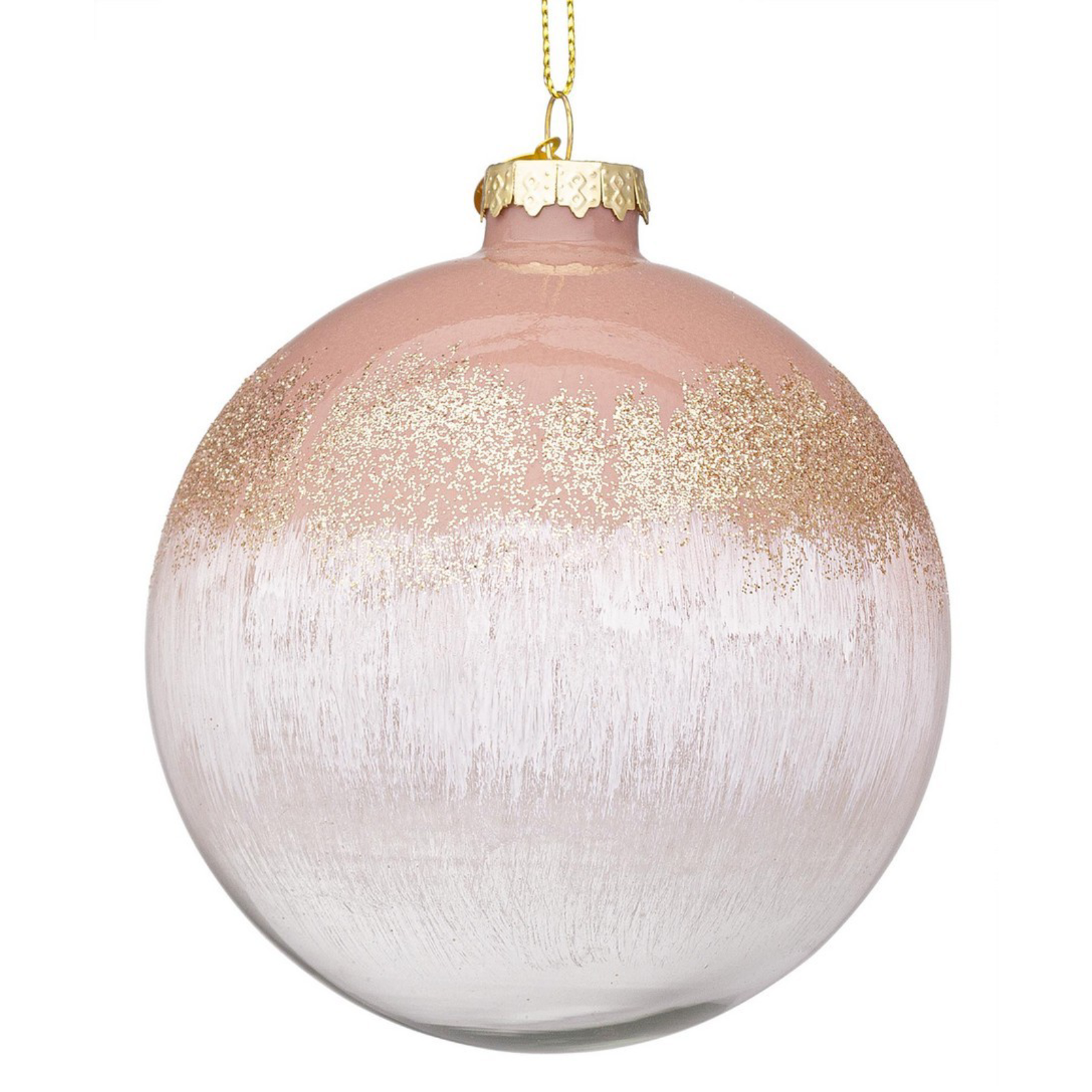 Gancio dorato: permette di appendere la sfera con semplicità su alberi, rami o ghirlande.