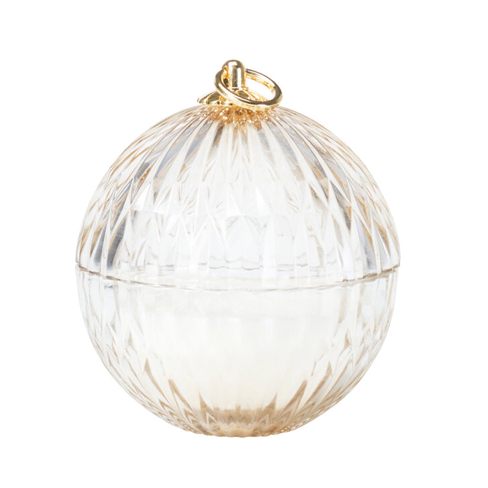 Sfera in vetro con candela con gancio dorato per decorazioni natalizie