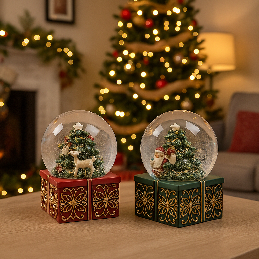Adatto sia per adulti che per bambini, questo delizioso globo di neve natalizio decorativo con acqua di Natale, è la decorazione perfetta per il giorno di Natale e un grande regalo per la famiglia e gli amici.