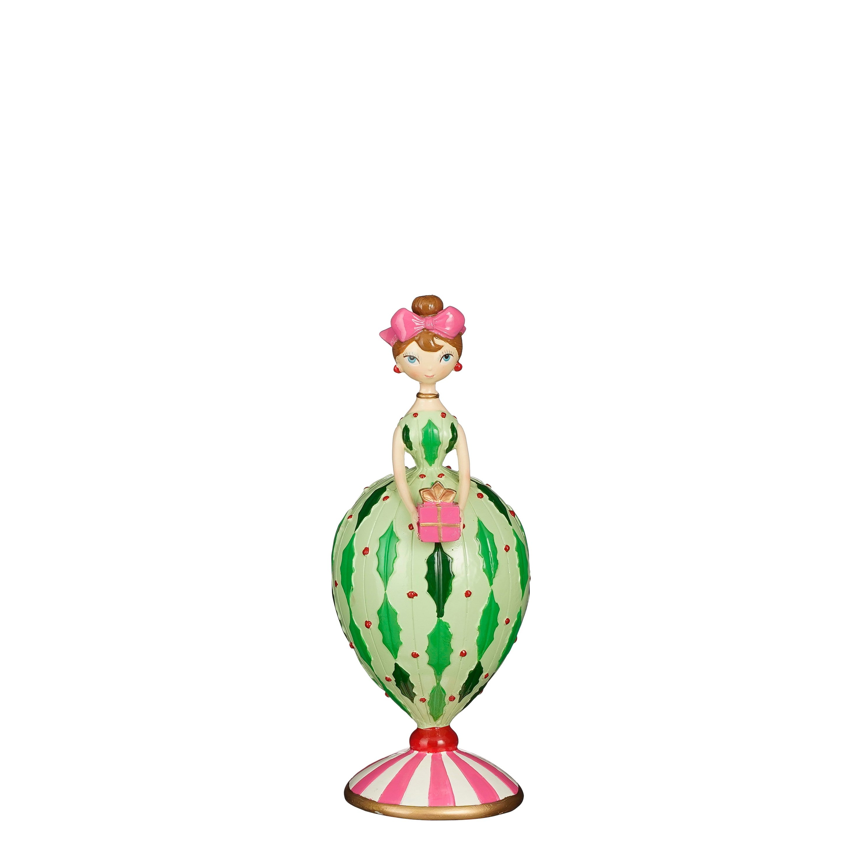 Aggiungi un tocco di charm e festività al tuo villaggio di Natale con questa adorabile signorina con palla e regalo.