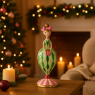 Questa signorina con palla e regalo è un'aggiunta incantevole al tuo villaggio di Natale, portando eleganza e gioia alle tue decorazioni festive.