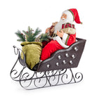 Slitta Babbo "Fabian" in metallo colore rosso con slitta e sacco per decorazioni natalizie