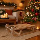 La slitta decorativa natalizia sbiancata in legno è un elemento d'arredo festivo che aggiunge un tocco di tradizione e rusticità alle decorazioni natalizie della tua casa.