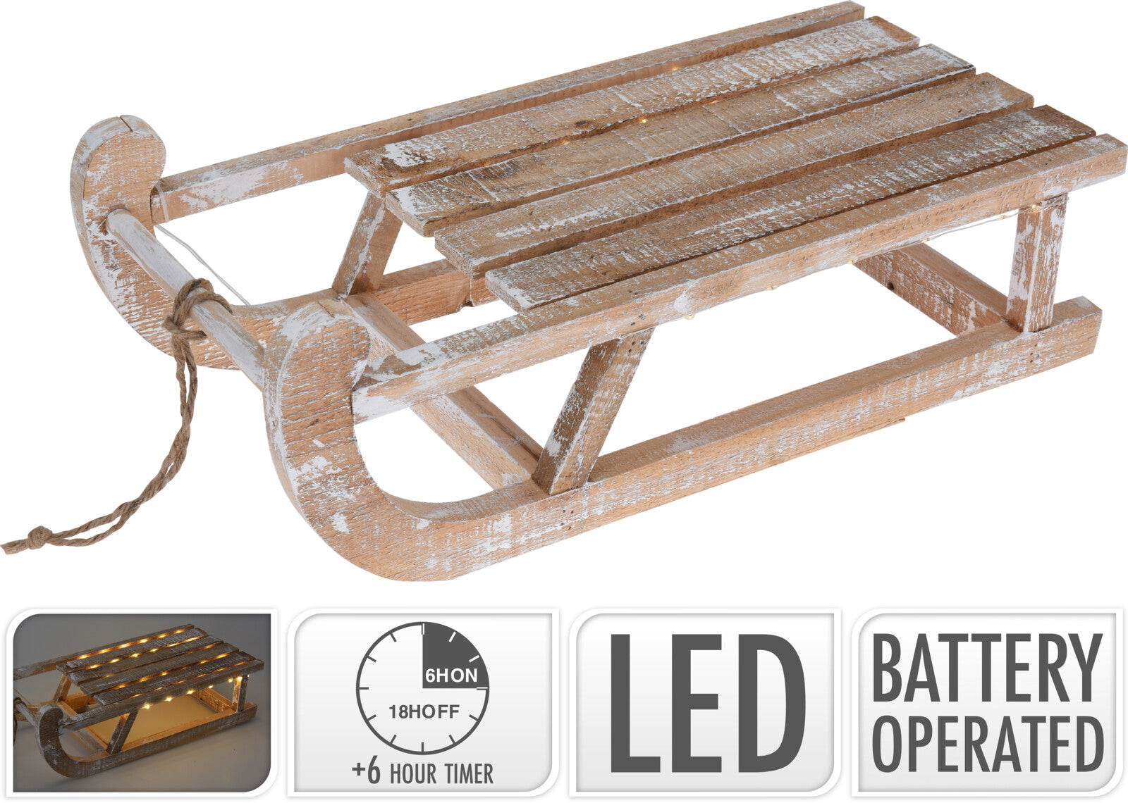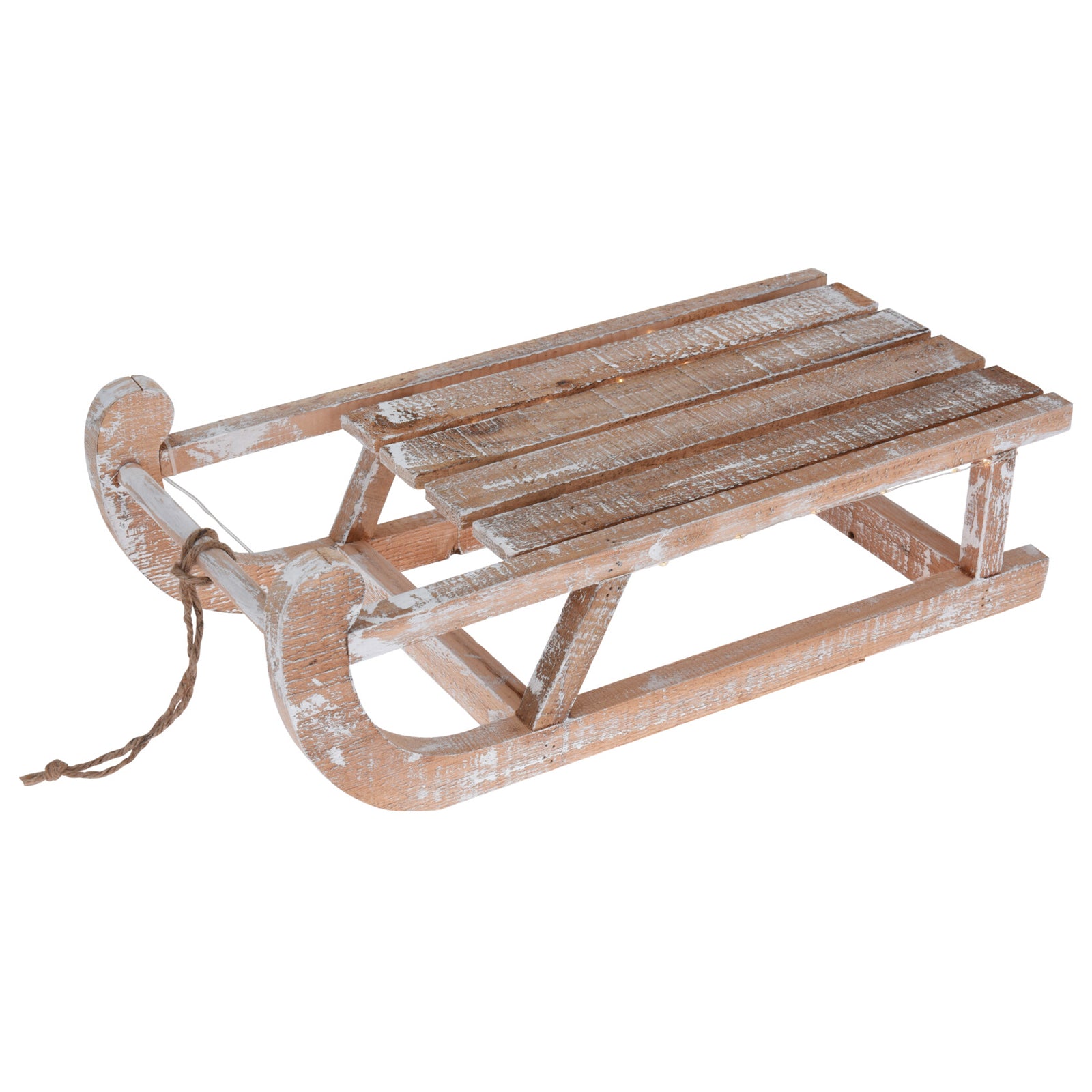 Slitta decorativa natalizia sbiancata in legno per decorazioni natalizie