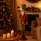 Soldatino natalizio in metallo con cappello e lanterna color rosso decorativo natalizio 172 cm