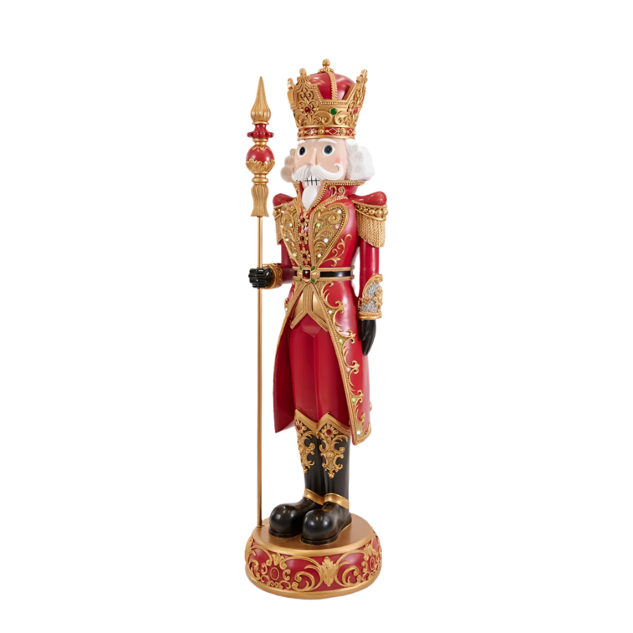 Realizzato in legno di alta qualità, questo soldatino è dipinto a mano con colori vivaci e dettagli accurati. Indossa un'uniforme militare tradizionale, ornata con bottoni dorati e spalline, che conferiscono un aspetto regale e solenne.