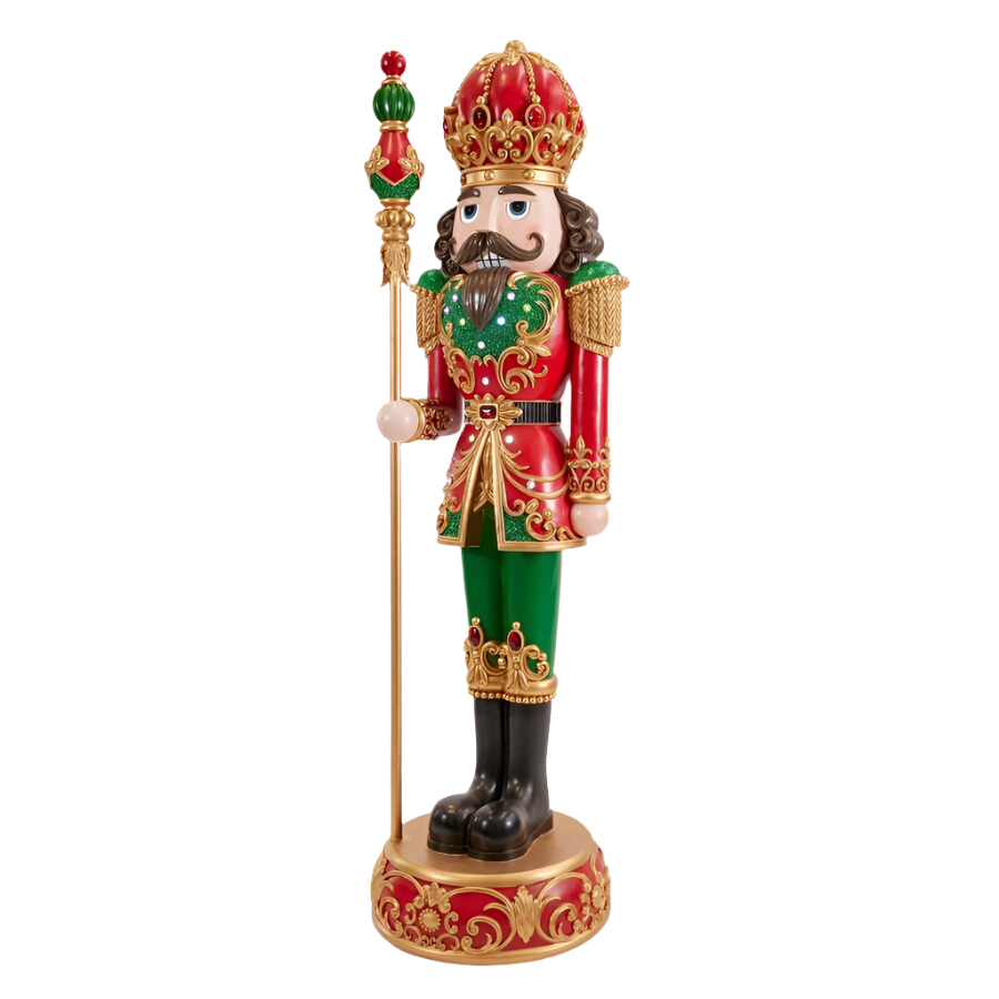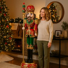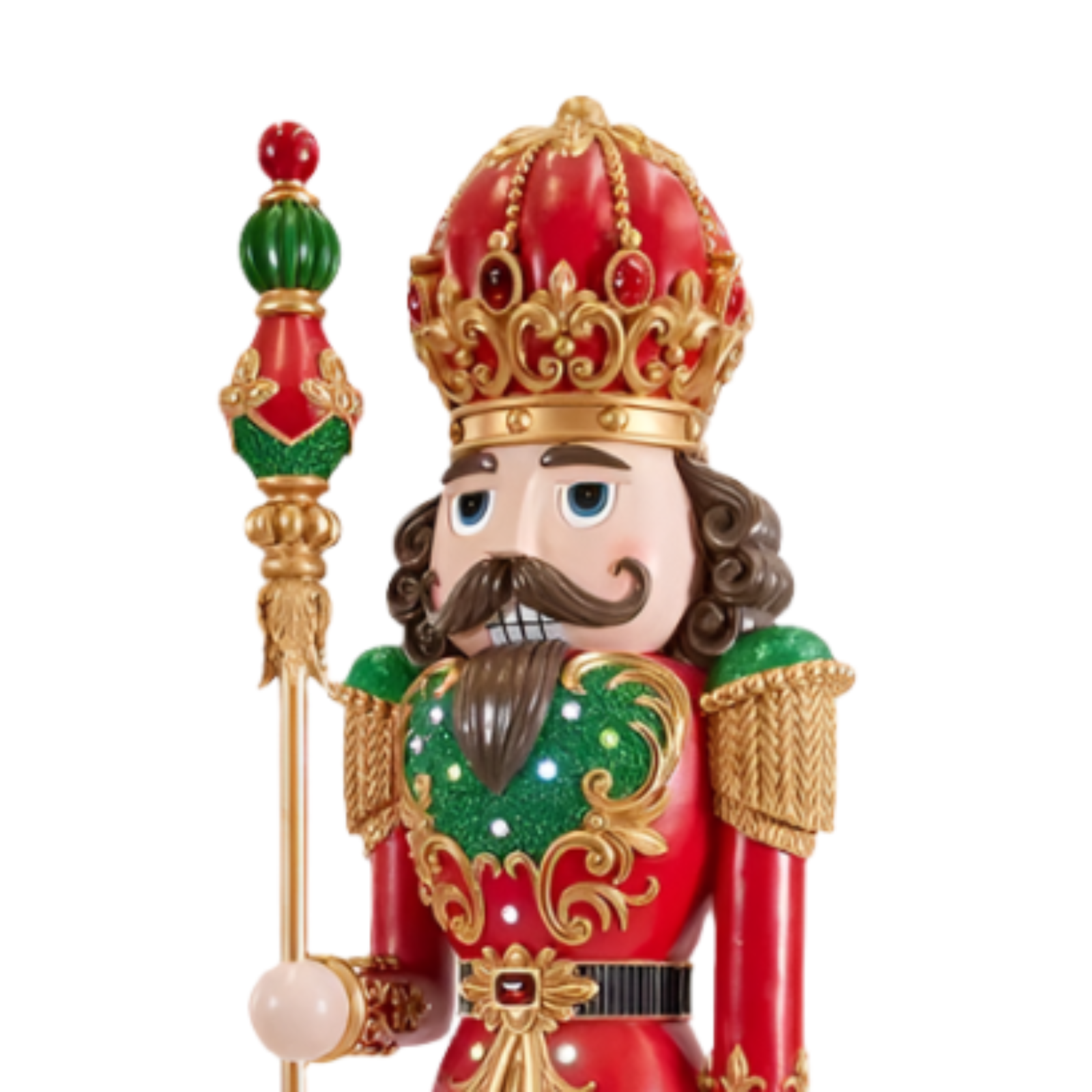 Soldatino schiaccianoci con led e musica in resina decorazione natalizia, h 184 cm