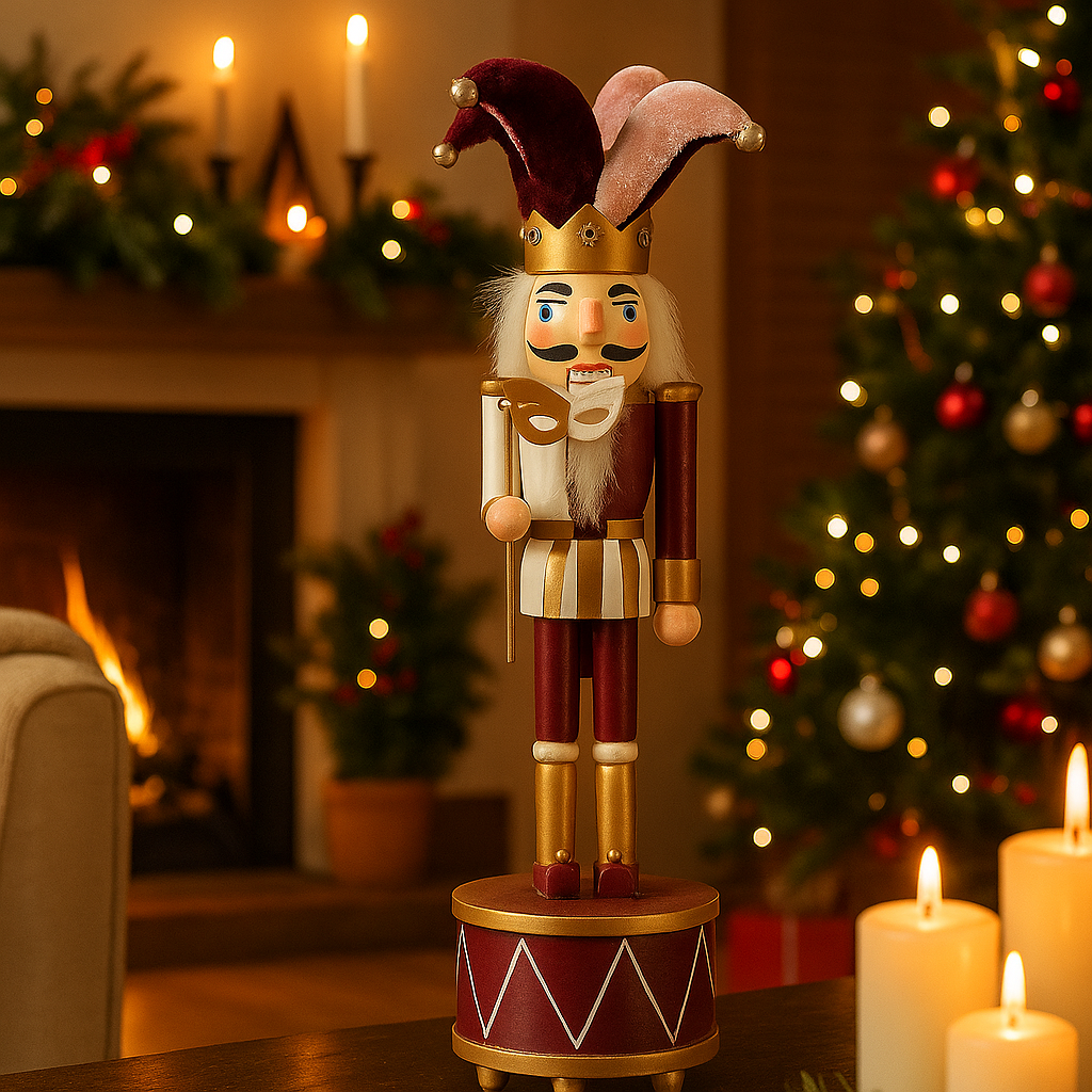 Questo raffinato soldatino Schiaccianoci da 30 cm unisce il fascino della tradizione natalizia alla magia della musica. Realizzato con cura nei dettagli, è dotato di carillon integrato che suona una melodia festiva, rendendolo perfetto come decorazione da appoggio e complemento d’arredo suggestivo.