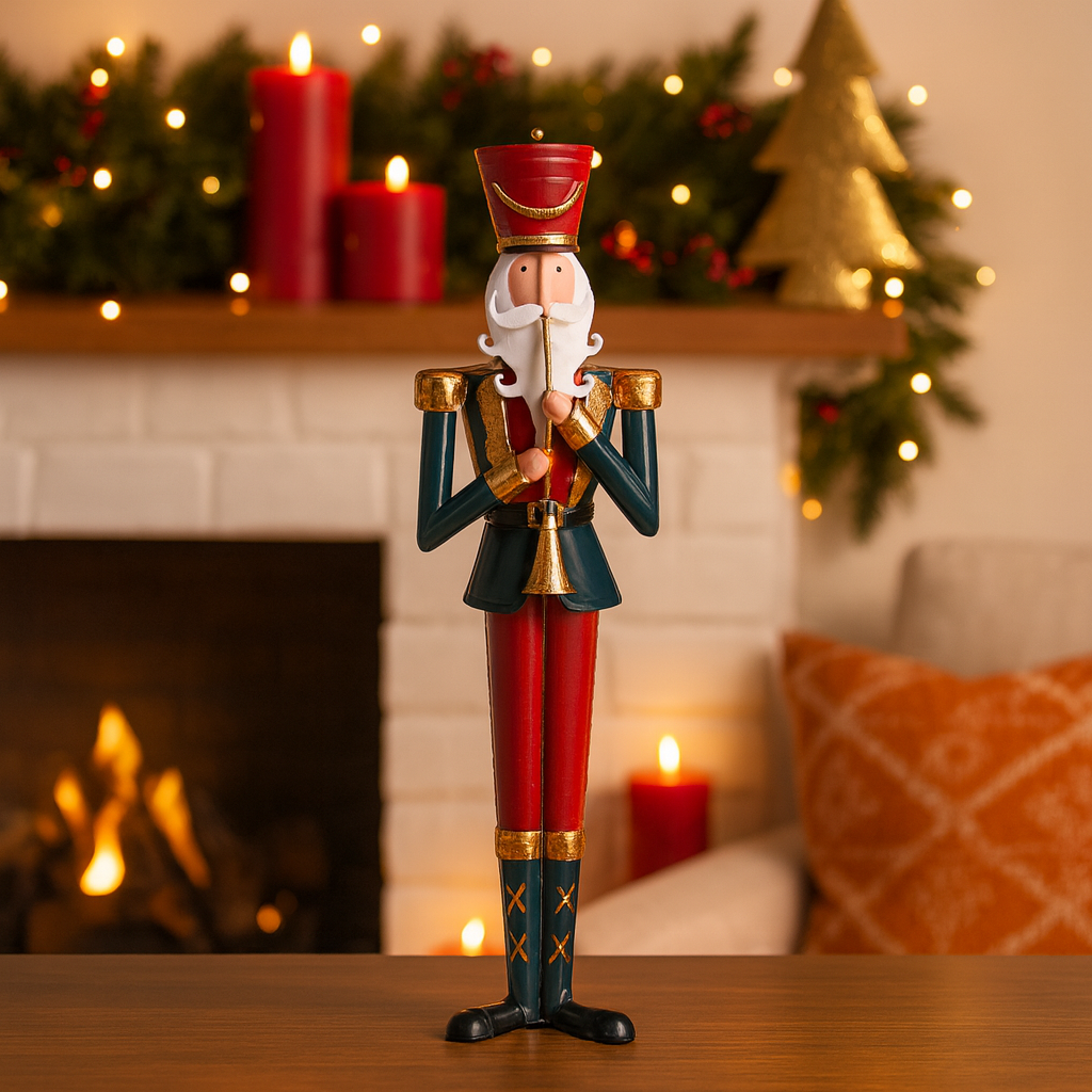 Soldatino schiaccianoci con trombetta per decorazioni interne h 36 cm