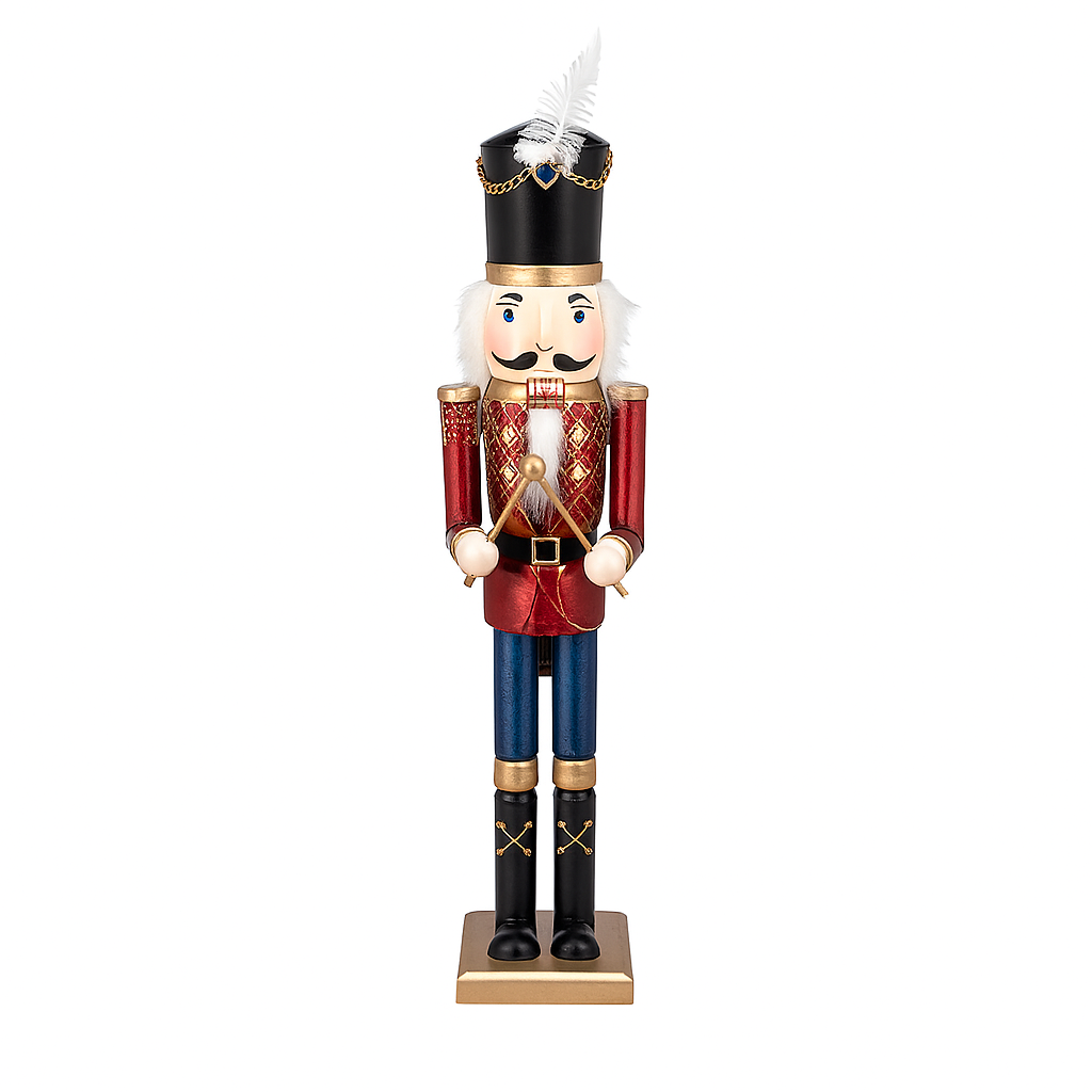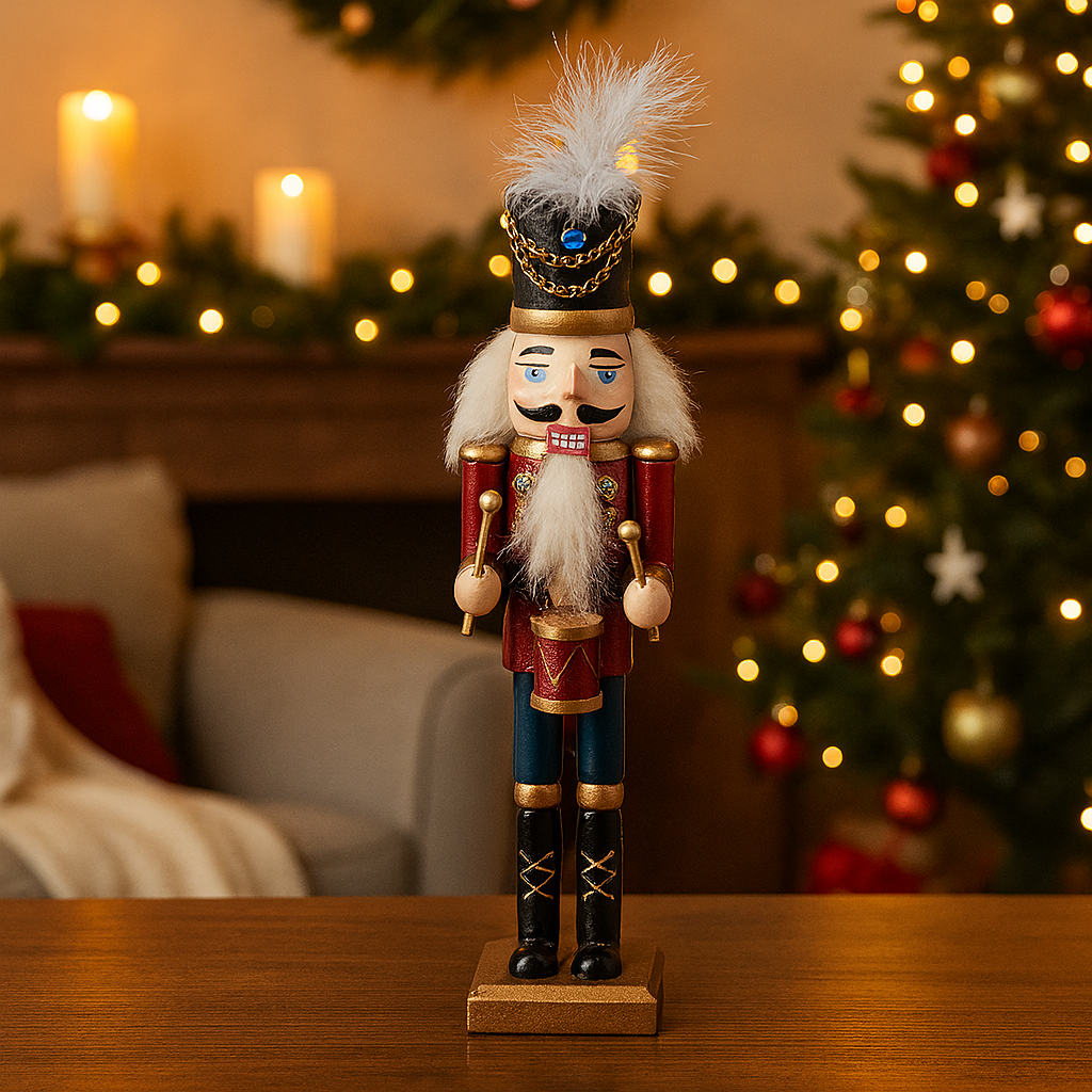 Scopri il fascino senza tempo di questo soldatino schiaccianoci in legno, arricchito da dettagli curati che portano in casa tutta la magia del Natale.