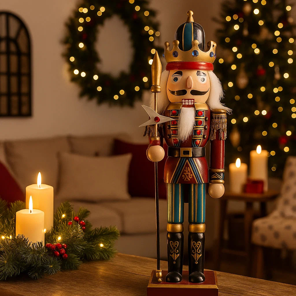 Soldatino Schiaccianoci in legno, classica decorazione natalizia in stile vintage.