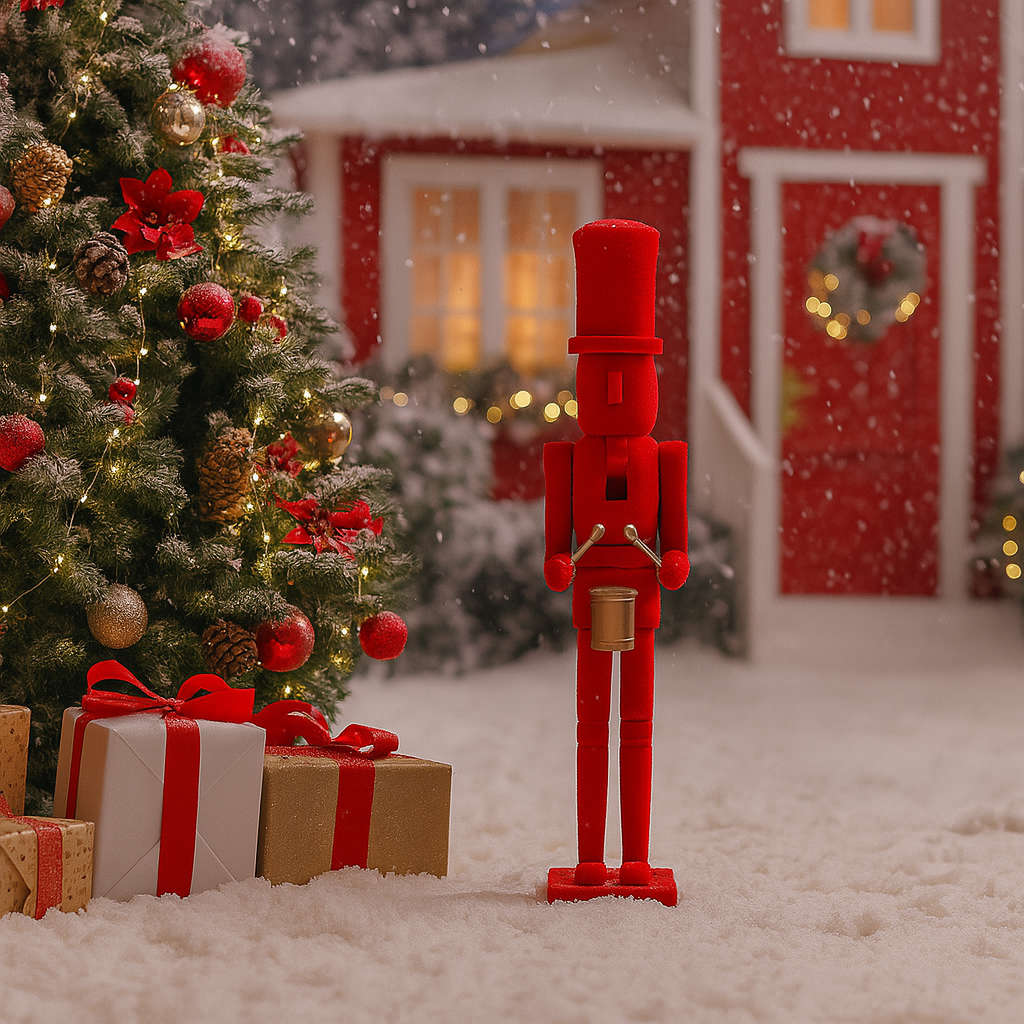Il soldatino schiaccianoci natalizio in legno floccato in scatola regalo è una decorazione che racchiude in sé tutto il fascino delle tradizioni natalizie più classiche, reinterpretata con dettagli eleganti e finiture di pregio.