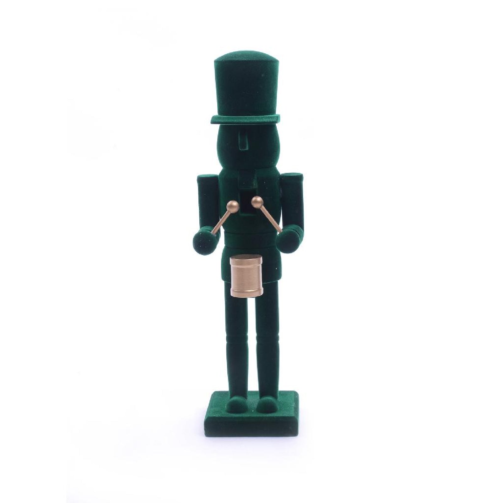 La superficie del soldatino è arricchita da un trattamento floccato, una speciale finitura che ricopre il legno con un sottile strato vellutato al tatto, donando alla decorazione un aspetto morbido e raffinato, capace di catturare la luce in modo delicato e creare piacevoli sfumature cromatiche.