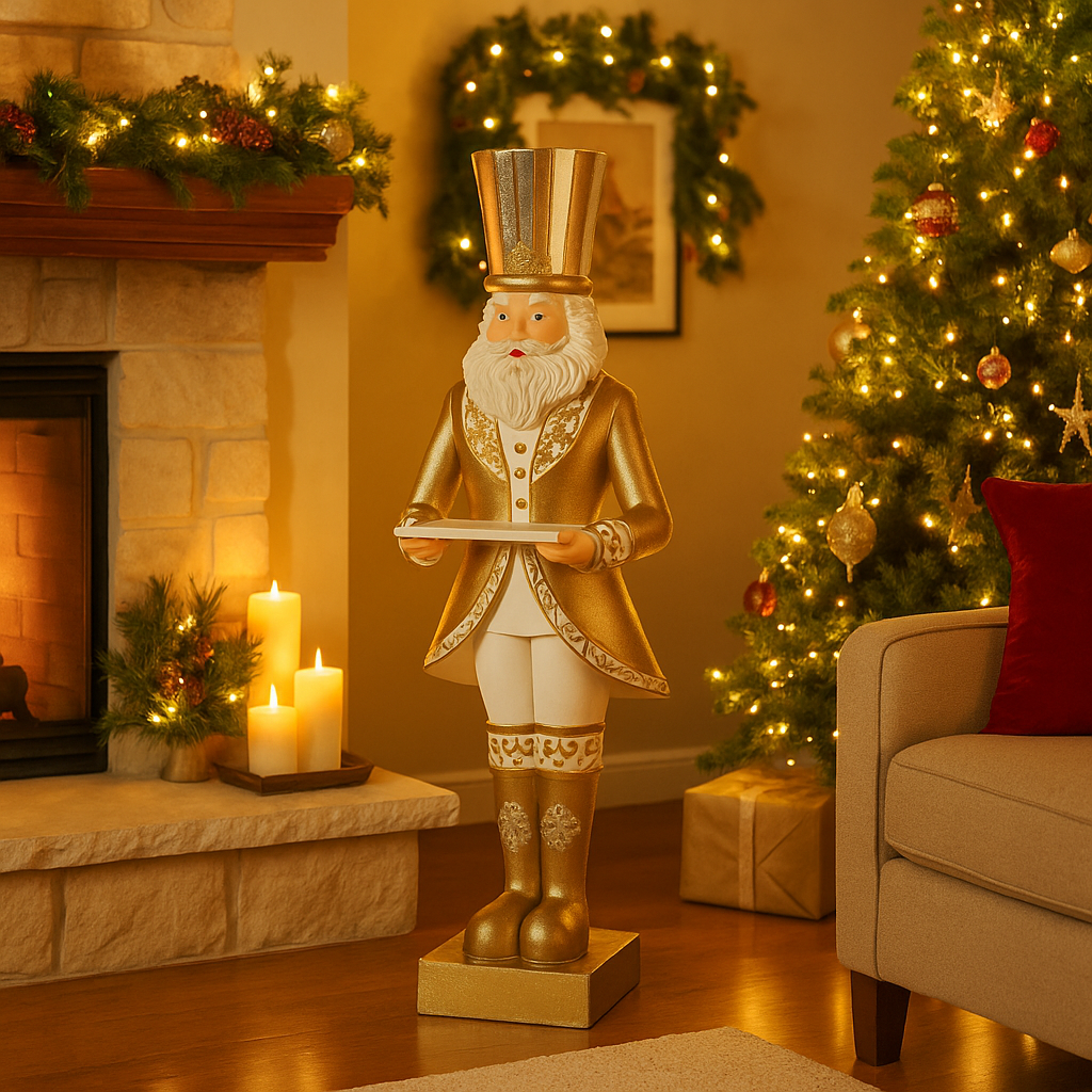 La sua altezza di 35 cm lo rende perfetto come elemento decorativo da posizionare su mensole, caminetti o come parte di una scenografia natalizia, donando un tocco di tradizione e calore alla casa.