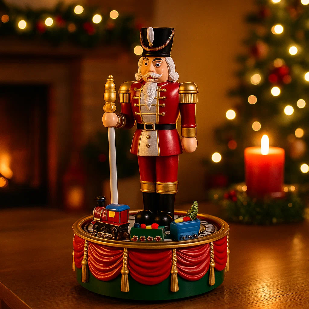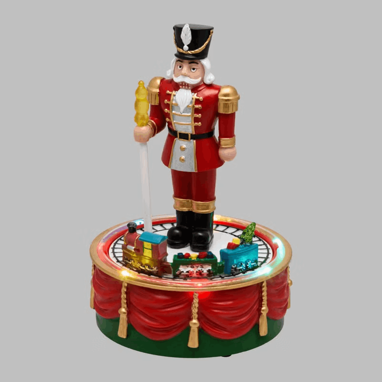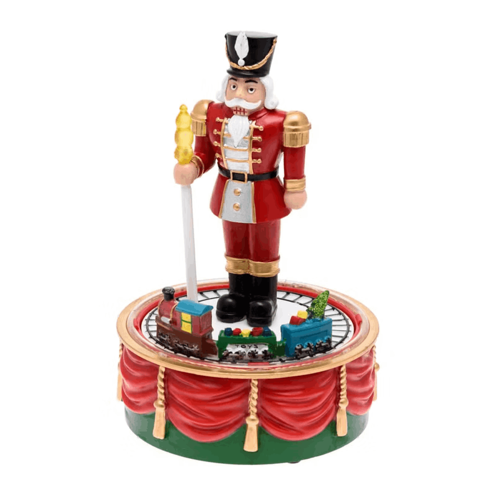 Soldato Schiaccianoci con Trenino Natale in movimento rotatorio, h 19 cm, musiche natalizie