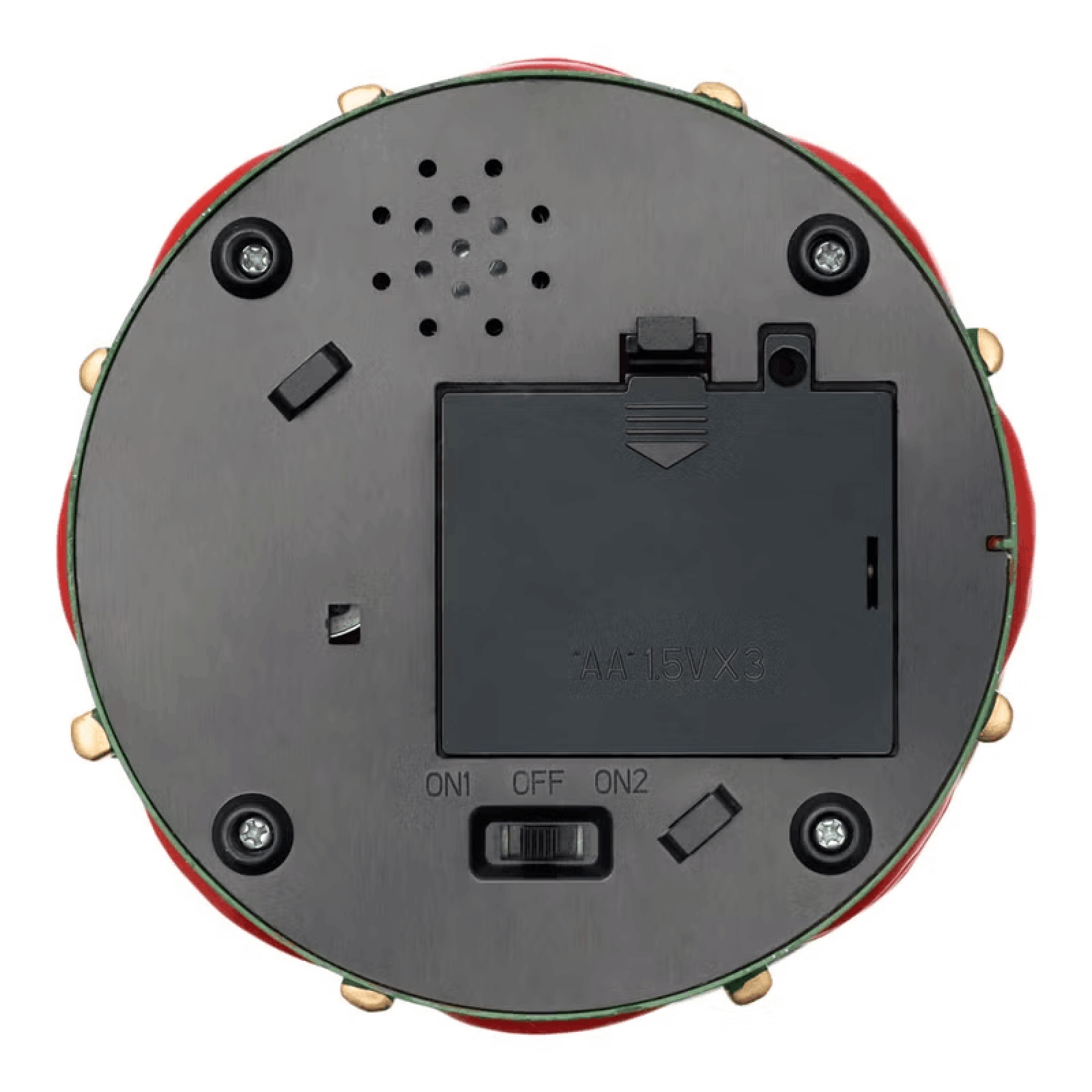 Il villaggio è alimentato da 3 batterie stilo (AA), non incluse. L'alloggiamento delle batterie è integrato ed è posto alla base; include anche un comodo interruttore On-Off.