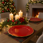 Rendi unica la tua tavola delle feste con questo elegante sottopiatto natalizio nei toni del rosso e dell’oro.