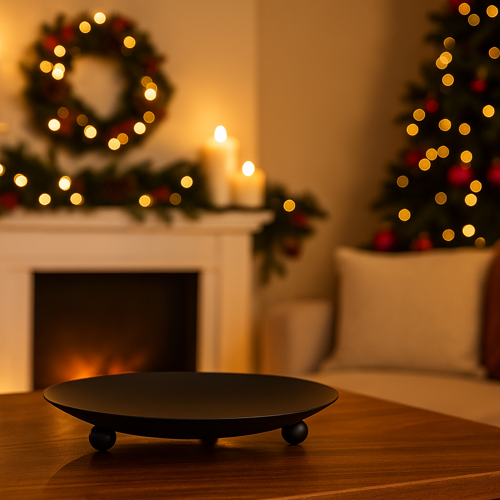 La sottocera per candele decorative descritta è un accessorio realizzato in metallo, progettato per offrire supporto e protezione alle candele decorative all'interno della tua casa. Il colore della sottocera è nero, che conferisce un aspetto elegante e sofisticato.