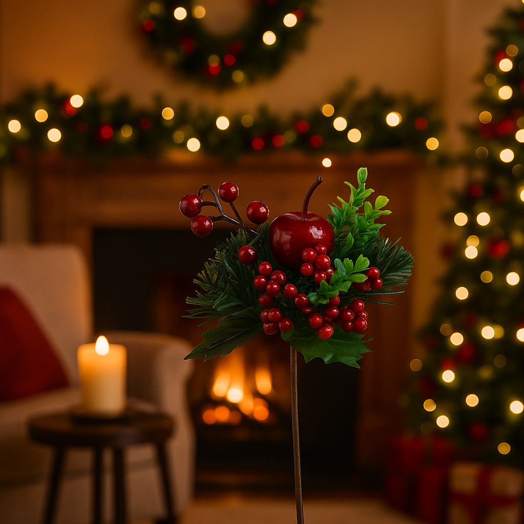 Spillone chiudi pacco con bacche rosse addobbi per Alberi e Ghirlande natalizie h 19 cm