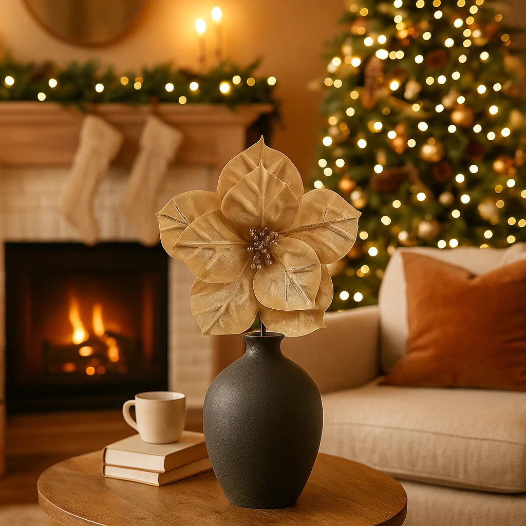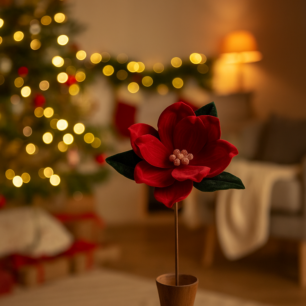Pensato per chi ama un Natale dallo stile caldo e autentico, questo fiore dona immediatamente un senso di eleganza rustica e raffinatezza discreta a qualsiasi ambiente.