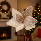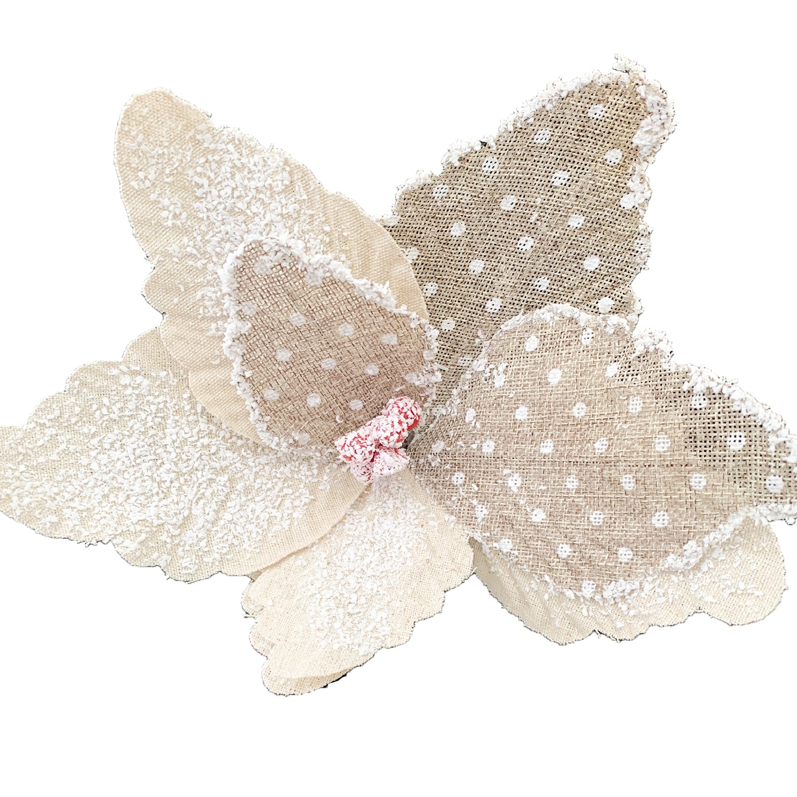 Fiore in tessuto Beige per albero di Natale h 25 cm in juta a pois – Eleganza rustica per le tue decorazioni natalizie