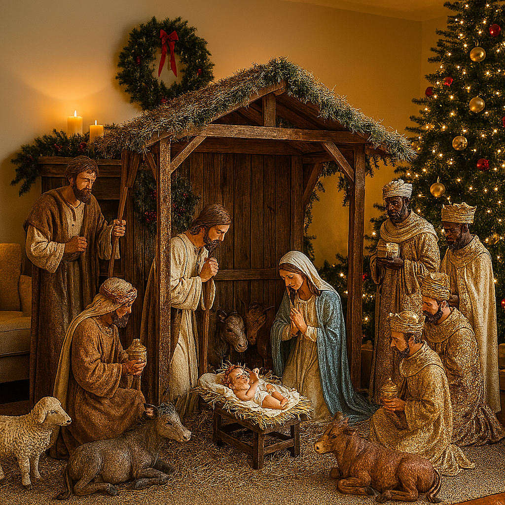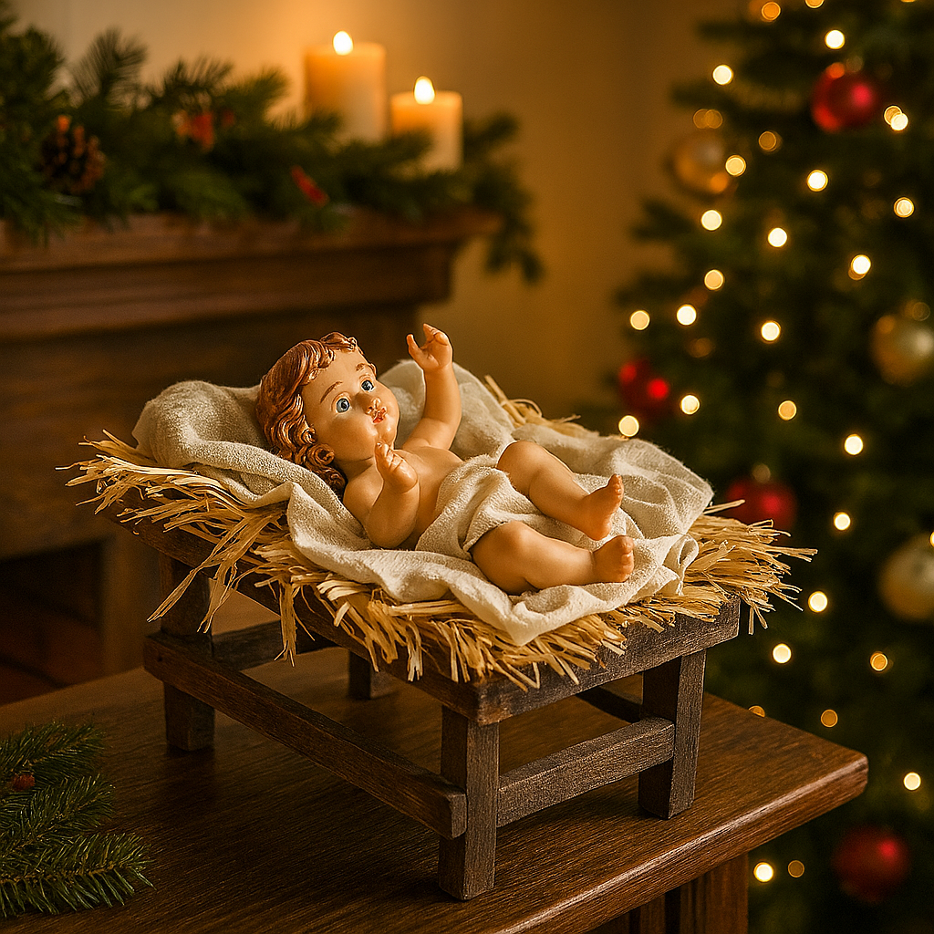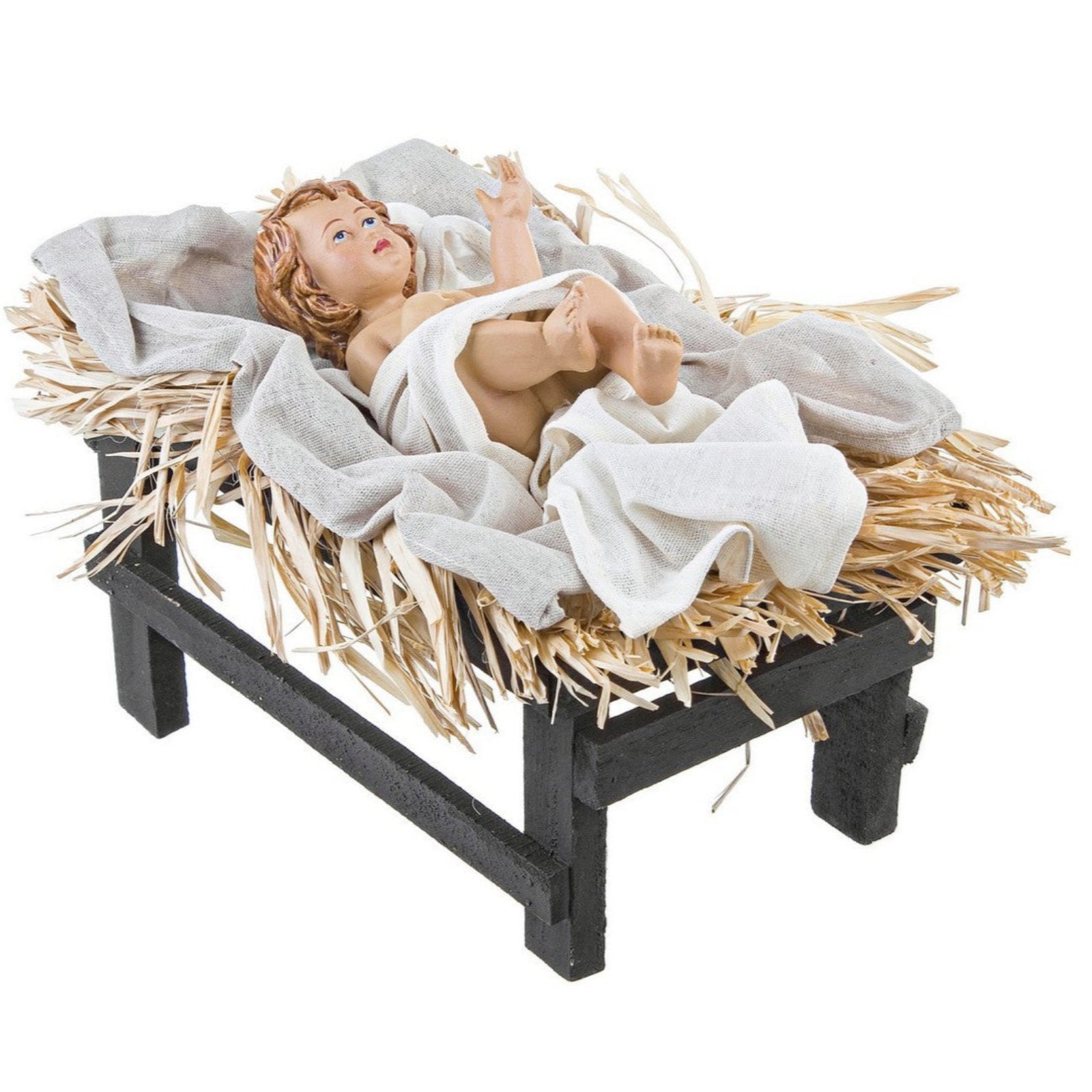 Questa statuetta è realizzata con una cura artigianale che enfatizza tanto il valore spirituale quanto l’estetico, rendendola una decorazione essenziale per qualsiasi allestimento natalizio.
