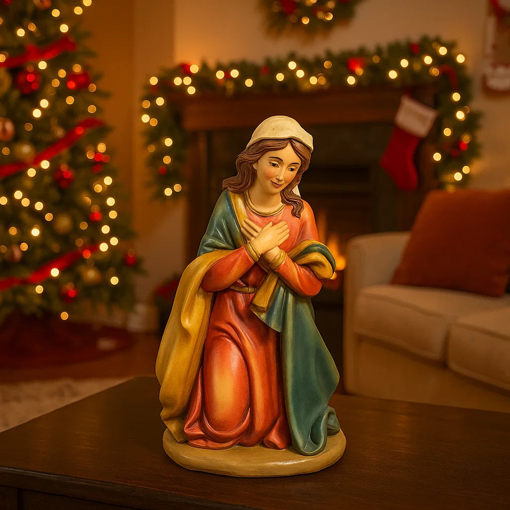 Realizzata con materiali di alta qualità come la poliresina o la ceramica, la statua della Madonna Vergine Maria è progettata per essere robusta e duratura, garantendo che possa essere un pezzo centrale delle tue decorazioni natalizie per molti anni.