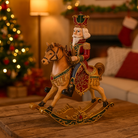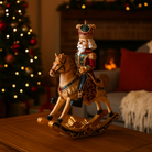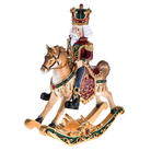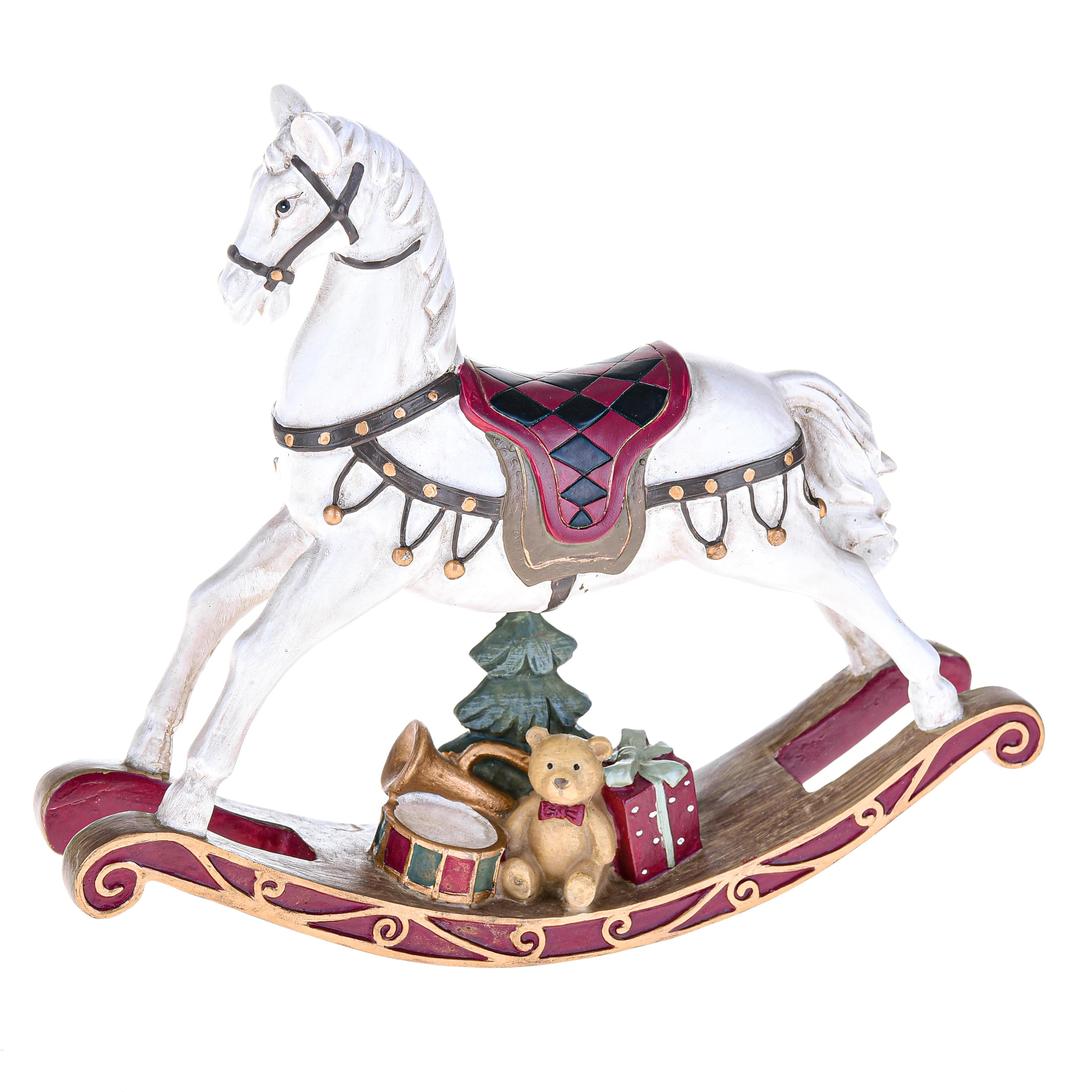 Statuetta cavallo a dondolo con babbo in resina per decorazioni interne