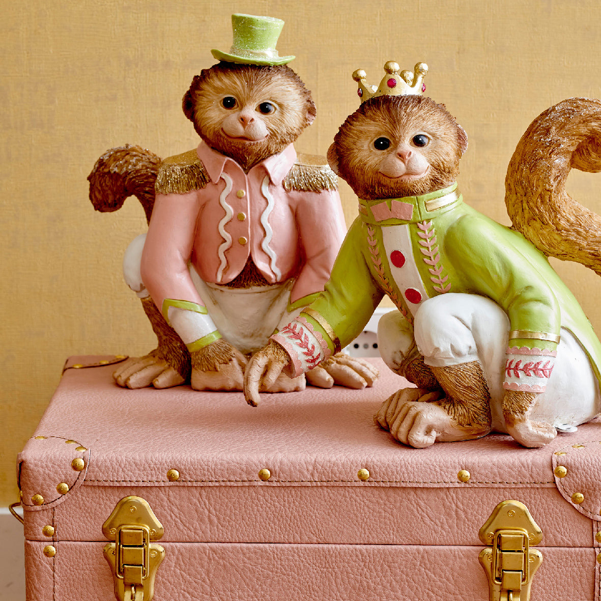 Statuetta con scimmie vestite da re e maggiordomo decorazione per interno e esterno