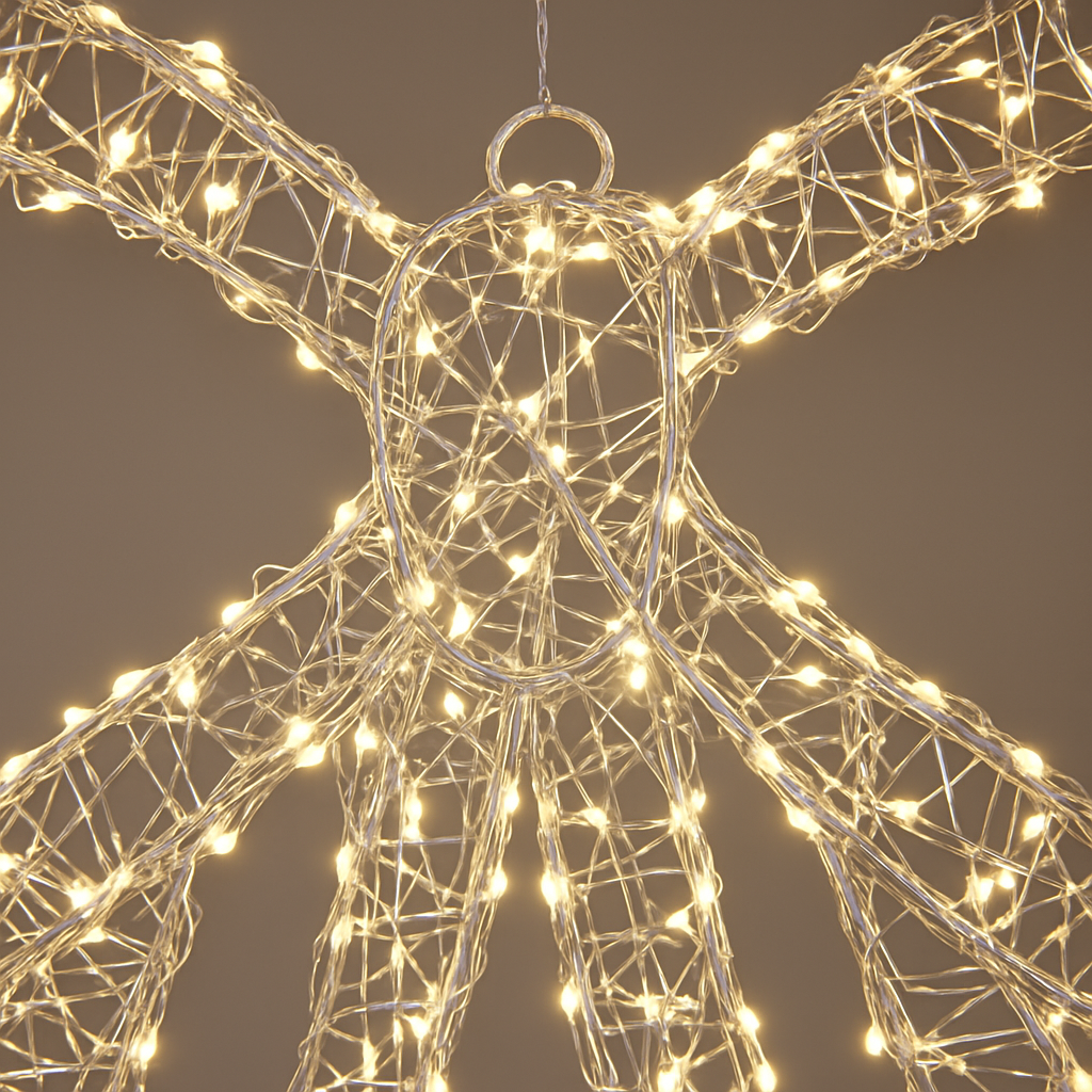 Dona un tocco di magia e raffinatezza alle tue feste con questa statuetta decorativa a forma di fiocco, impreziosita da luci LED a luce calda. Perfetta per illuminare ingressi, angoli di casa o spazi esterni coperti, crea un effetto luminoso elegante e festoso, trasformando ogni ambiente in un angolo incantato.