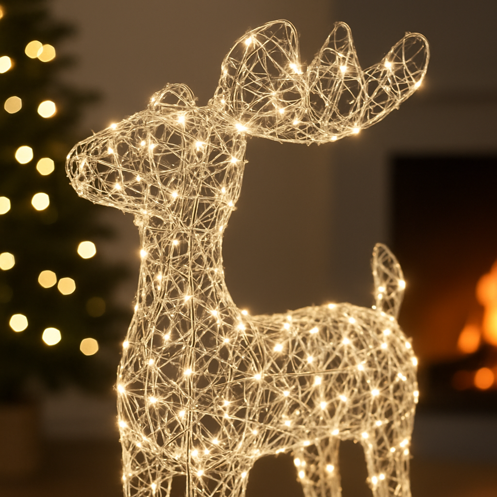 Perfetta per dare un tocco festoso e luminoso sia agli ambienti interni che a quelli esterni, questa renna crea un’atmosfera accogliente e suggestiva, ideale per completare il tuo allestimento natalizio.