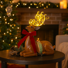 Statuetta decorativa a forma di renna seduta con fiocco, decorazione natalizia da 40.5 cm