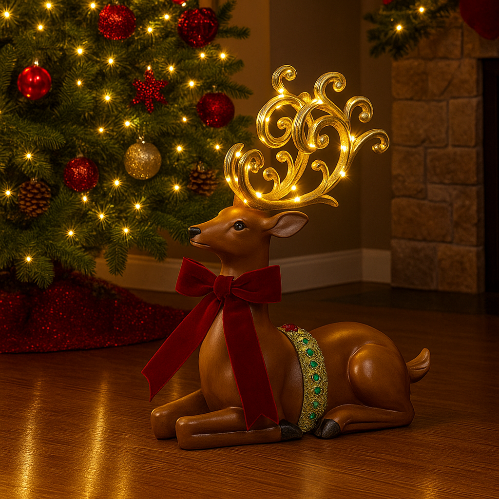 Renna seduta con fiocco – Un tocco tenero e raffinato per il tuo Natale!