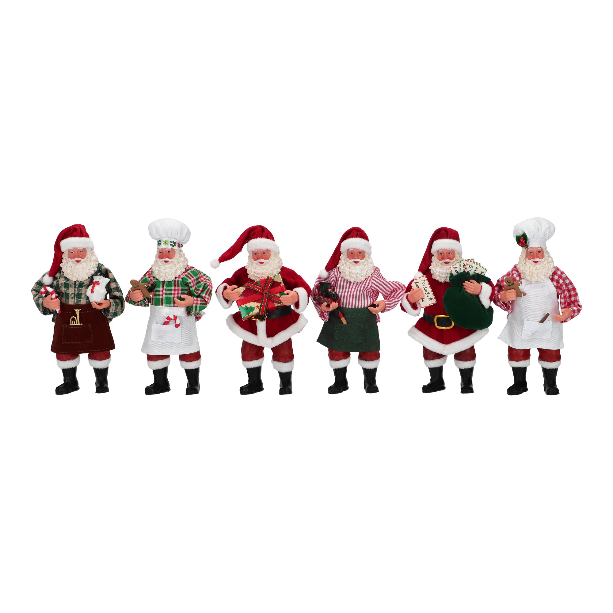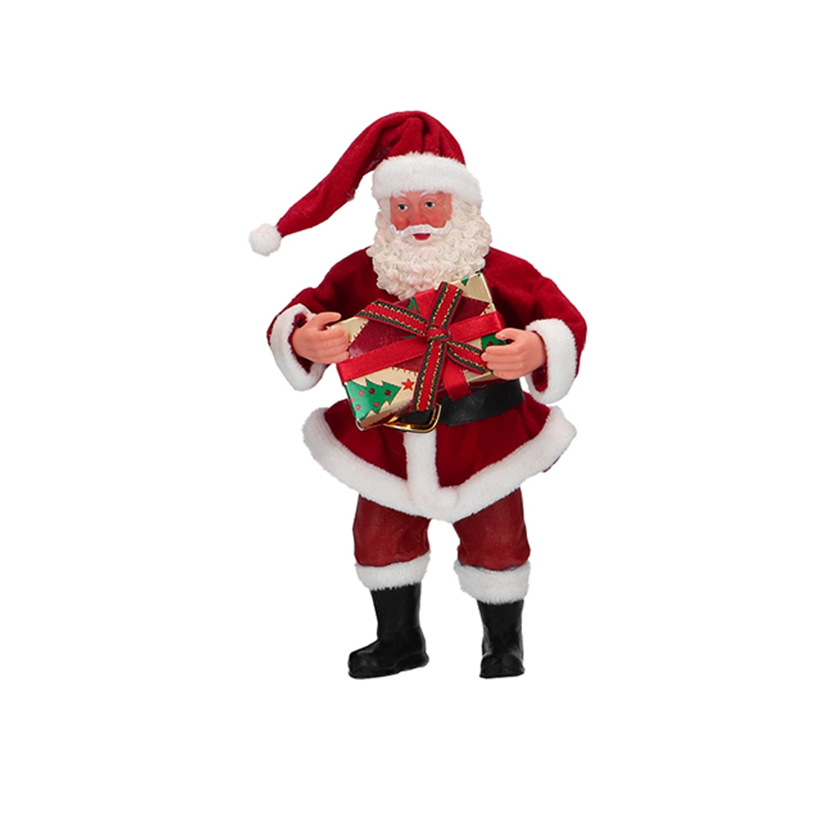 Alta 17 cm, questa statuetta rappresenta il classico Babbo Natale con il suo caratteristico abito rosso bordato di pelliccia bianca, il cappello con il pon pon, e la lunga barba bianca.