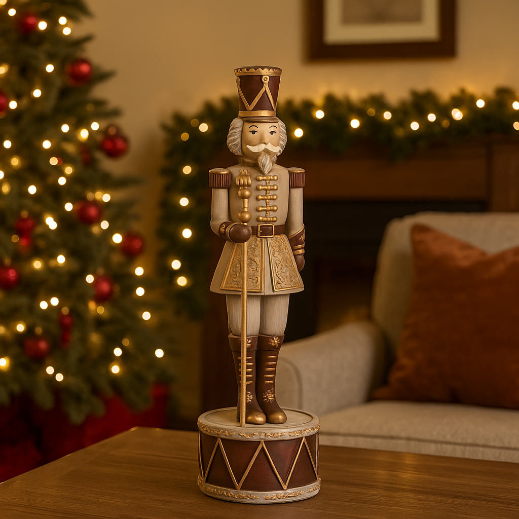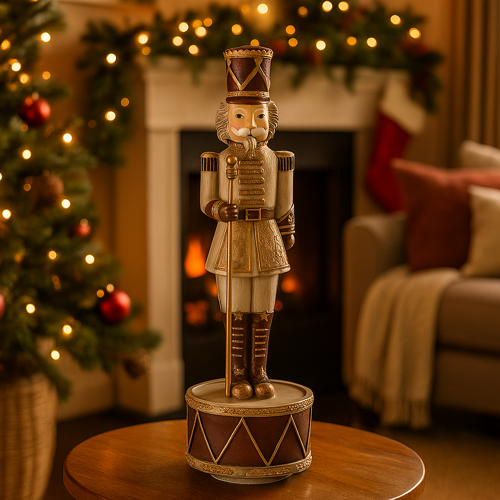 Statuetta decorativa in poliresina Soldatino schiaccianoci "Edwyn" natalizio con tamburo h 28 cm