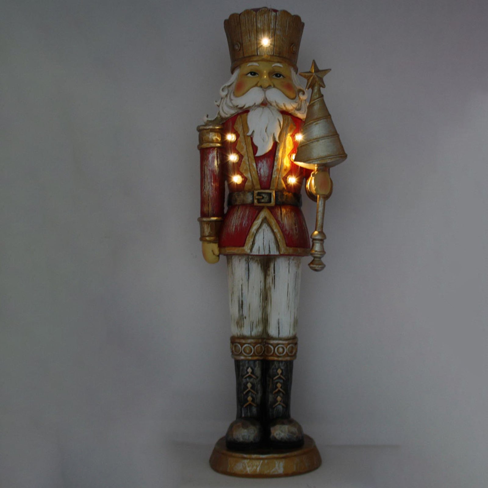 Porta a casa la magia delle feste con la statuetta decorativa in poliresina Soldatino Schiaccianoci con LED da 47 cm, un classico intramontabile dell’atmosfera natalizia.