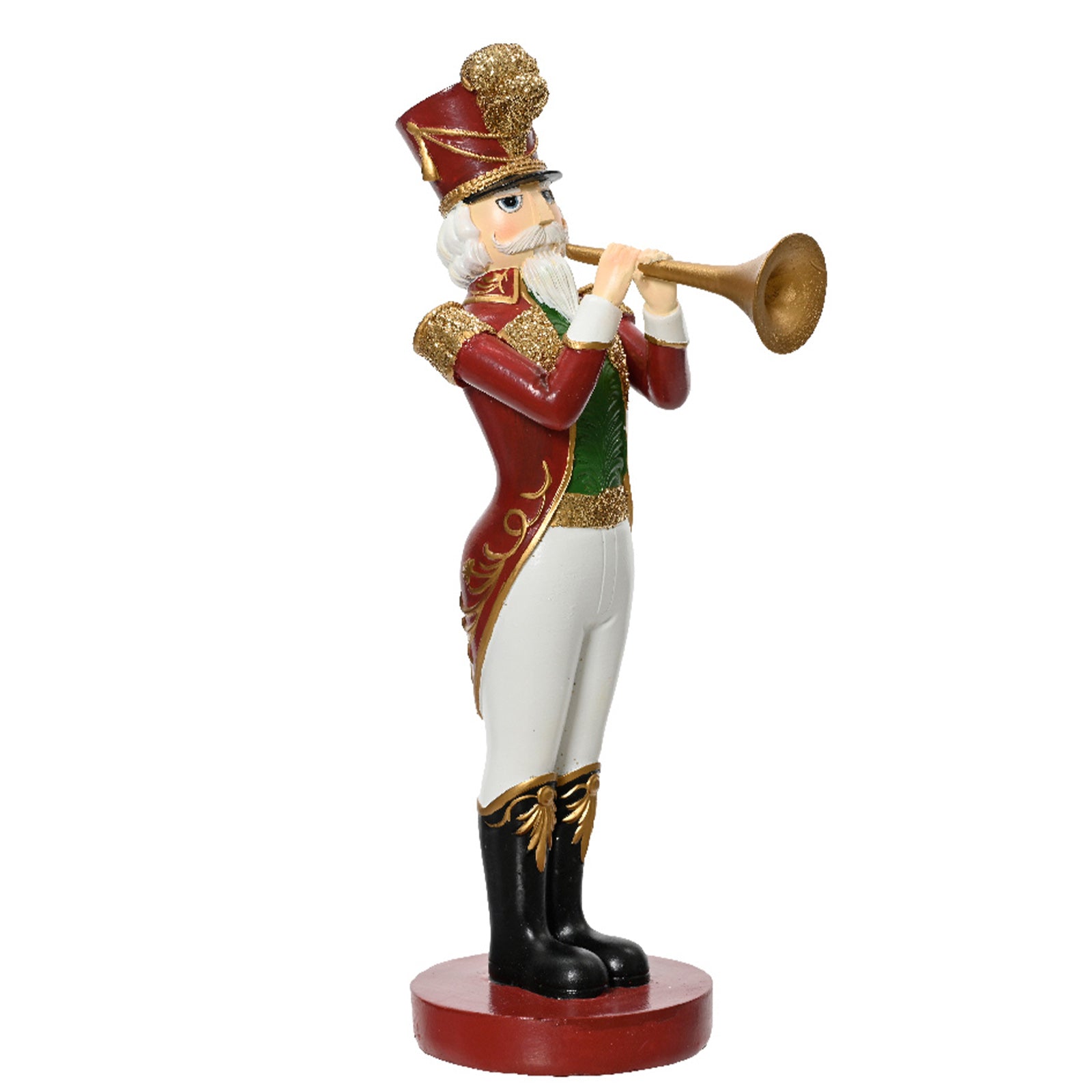 Statuetta decorativa Soldatino con tromba decorazione natalizia in resina da 25 cm