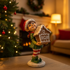 Incanta la tua casa con la dolce magia delle festività grazie alla nostra Statuetta di Elfo che Trasporta una Casetta Pan di Zenzero.