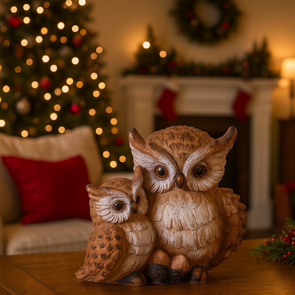 La combinazione del gufo e del fungo richiama atmosfere autunnali e invernali, regalando alla casa un dettaglio decorativo che unisce la magia della natura al fascino del Natale.