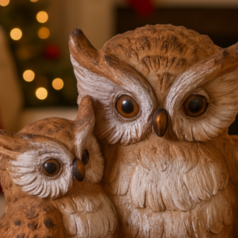 Statuetta di Gufetti decorazione natalizia color marrone da 17 x h 17 cm