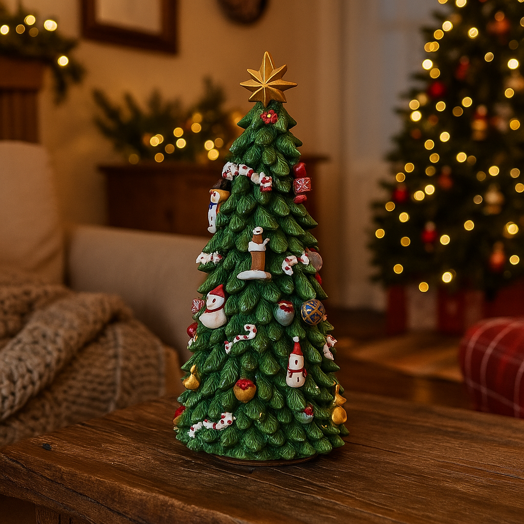 La statuetta di Natale "Alberello con Carillon" è un delizioso elemento decorativo pensato per abbellire gli interni durante le festività natalizie.