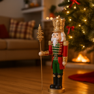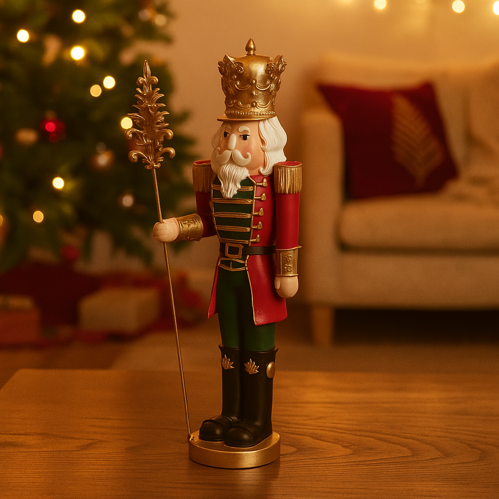 La sua altezza di 40 cm lo rende un elemento di spicco, ideale per essere posizionato all’ingresso, accanto all’albero di Natale o su un caminetto, dove potrà accogliere ospiti e familiari con il suo aspetto solenne e al tempo stesso festoso. Curato in ogni minimo dettaglio, questo Schiaccianoci conquista con la sua espressione fiera, l’armatura dettagliata e la lancia che tiene in mano, simbolo di forza e protezione delle feste.