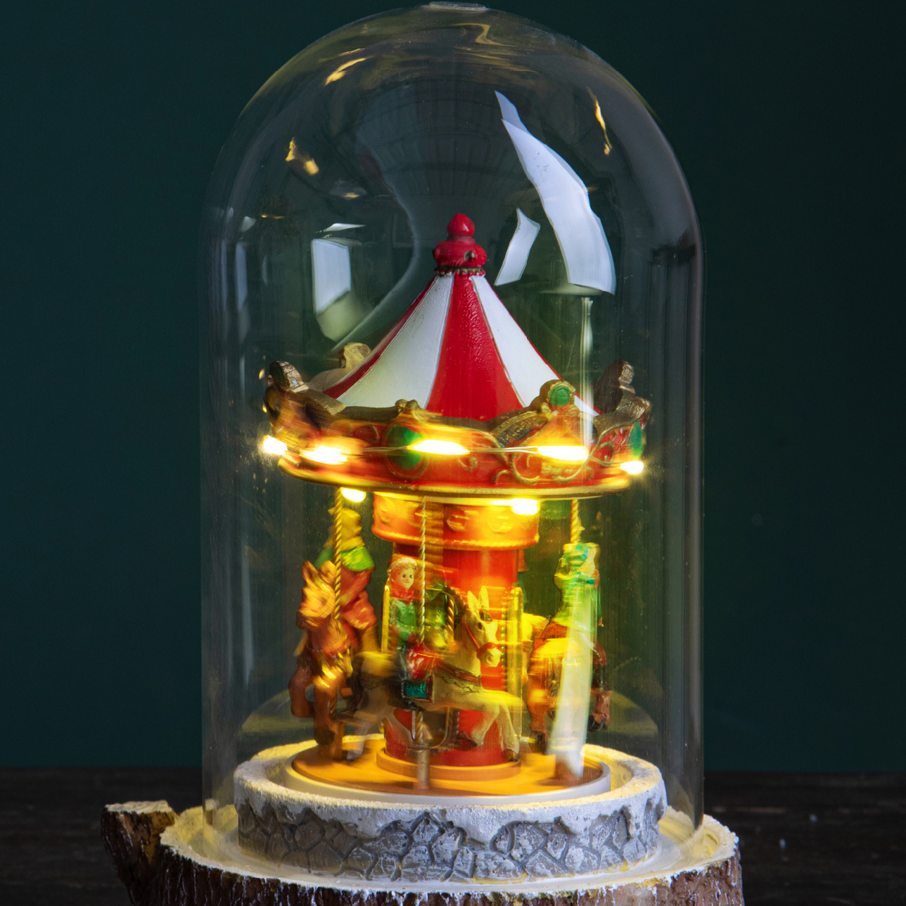 Statuetta giostra che si muove con luci e musica per decorazioni natalizie