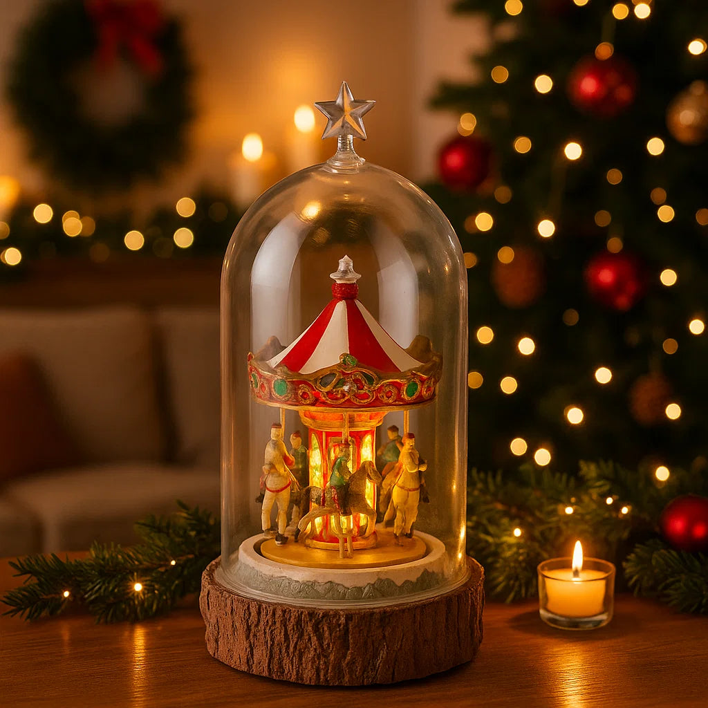 Rendi il tuo Natale ancora più speciale con questa incantevole statuetta a forma di giostra, dotata di un design affascinante e dettagli intricati.