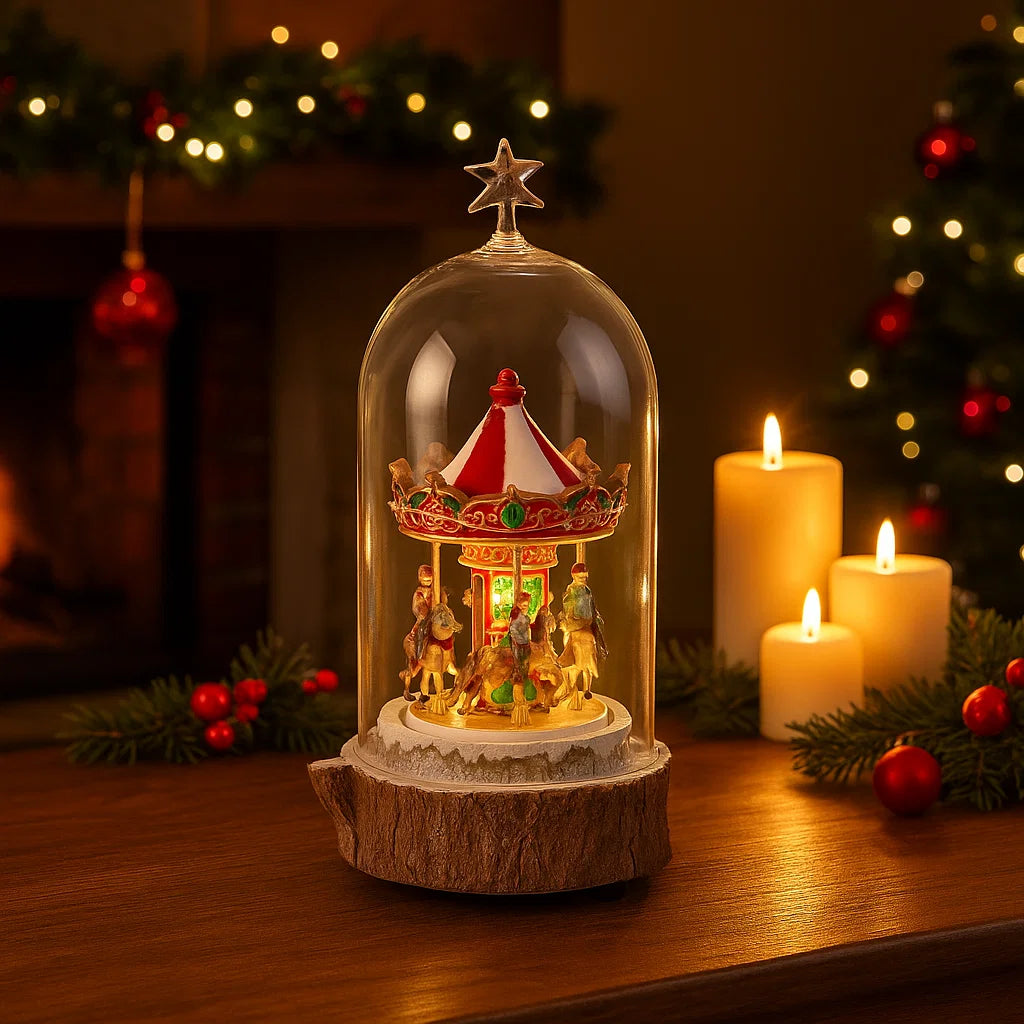 Perfetta per essere esposta su tavoli, mensole o come centro tavola, questa statuetta giostra porterà un’atmosfera di meraviglia e felicità nelle tue celebrazioni natalizie!